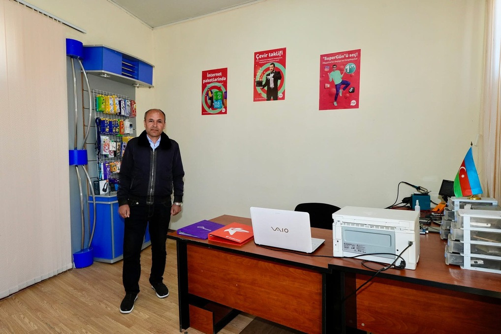 Özünüməşğulluq proqramının dəstəyi ilə aktivlər verilməklə B.Cəfərov üçün telefon təmiri, V.Ağayev üçün isə avtomobil şinlərinin bərpası və təmiri xidmətləri üzrə kiçik təsərrüfatlar qurulub. Onlar işsiz və işaxtaran şəxslərin kiçik biznesə çıxışına imkan yaradılması, öz təsərrüfatlarını yaratmaları üçün göstərilən dəstəyə görə Prezident cənab İlham Əliyevə minnətdarlıqlarını ifadə ediblər.